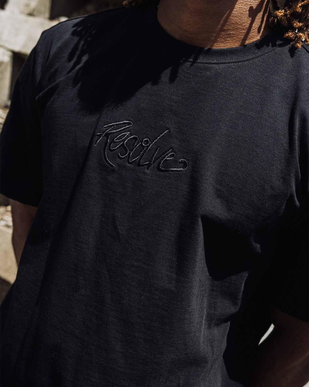 Resolve Daily Tee in Black. Featuring our new boxy, cropped fit with our embroidered logo.