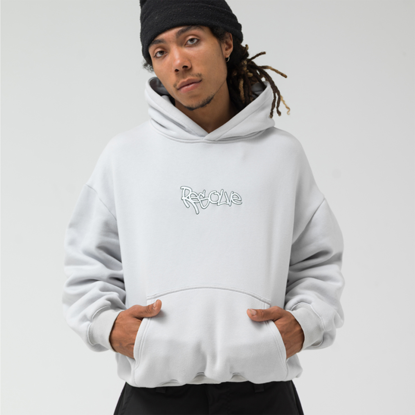 Resolve Graffiti Heavyweight Hood featuring box fit, cordless hood, embroidered Resolve script logo.